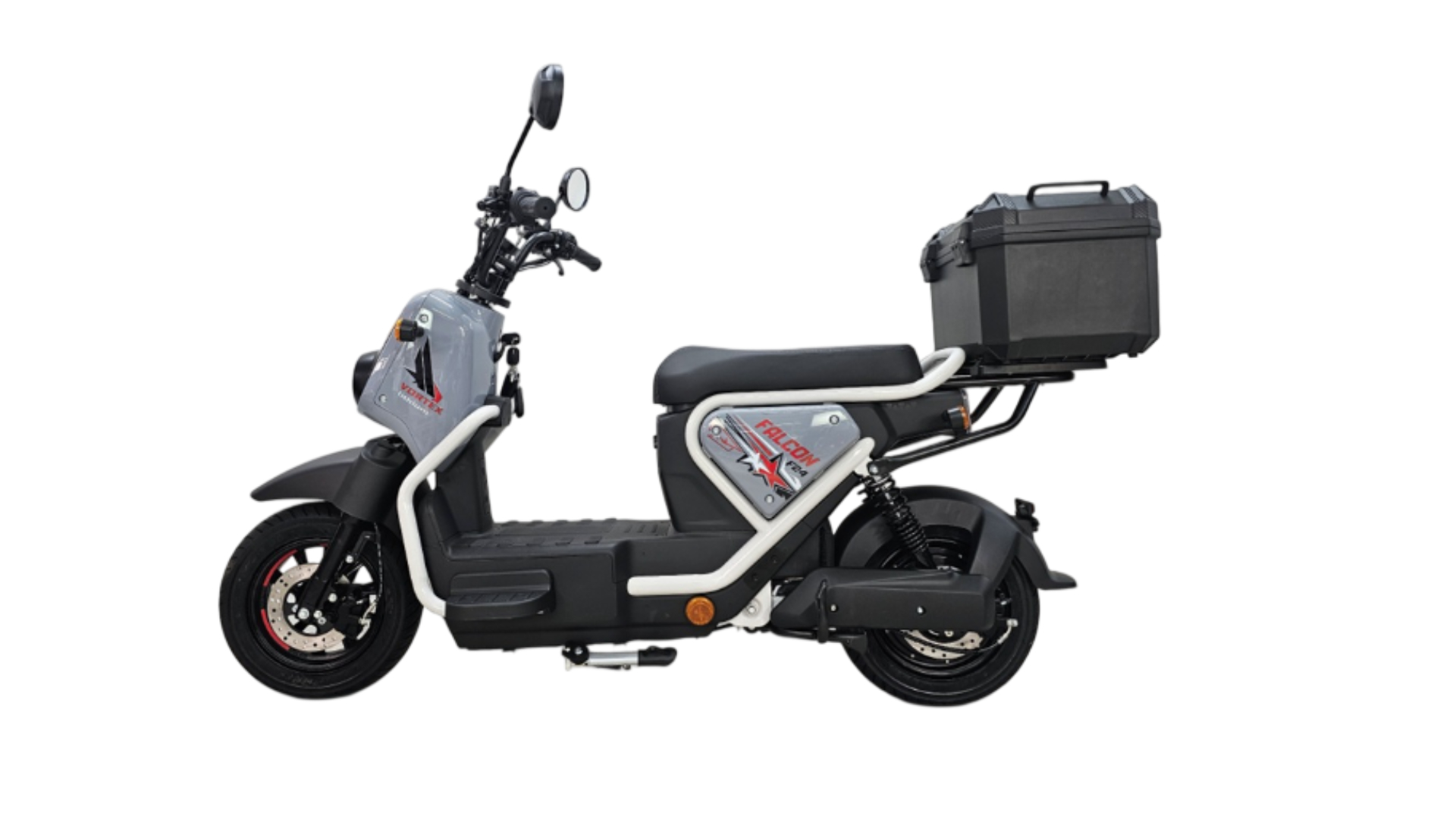 Início > Scooters Elétricas > Goose E-Bikes > DEMOPs > Falcon Lítio Falcon Lítio Lightning Fill Streamline Icon: https://streamlinehq.com Elétrico A partir de 1 315.00€ Disponível em Quer saber mais sobre este modelo? < > Dispositivo Elétrico de Mobilidade Pessoal (DEMOP) Aspecto moderno, painel de instrumentos digital tipo plasma e mala bagageira de série. Garantia do veículo: Trinta e seis meses Garantia das baterias: Dezoito meses As baterias de Li-on têm a sua durabilidade limitada 600 ciclos de carga. Este pack de baterias está constituido por células de linha branca e por ser um pack de 20Ah vai trabalhar a 1,5C da sua capacidade, razão pela qual não deverá execer a sua ciclagem. Motor e Bateria ▼ Potencia do motor 0,25 kW Tensão do Motor 72 Voltes Bateria de Lítio 72V / 20Ah Autonomia por carga 55 Km à velocidade de 25 Kmh Gerais ▼ Peso máximo do condutor 100 kg Travões Frente - Hidráulico / disco Trás - Hidráulico / disco Pressão de ar nos pneus Mínimo 2,4 bar Máximo 3,1 bar Anti-roubo Alarme eletrónico Medidas ▼ Comprimento 1700 mm Altura 1100 mm Largura 650 mm Altura do selim ao solo 720 mm Medida dos pneus 3.00 x 10 Informação Completementar de Preço Baterias Versão Bateria de Lítio Características Autonomia para: 55Km Garantia do veículo: 3 anos Garantia das baterias: Dezoito meses As baterias de Li-on têm a sua durabilidade limitada 600 ciclos de carga. Este pack de baterias está constituido por células de linha branca e por ser um pack de 20Ah vai trabalhar a 1,5C da sua capacidade, razão pela qual não deverá execer a sua ciclagem. Preço € (1) Informação Legal – Este DEMOP (Dispositivo Elétrico de Mobilidade Pessoal), é um dispositivos de circulação com motor elétrico, sendo assim equiparado a velocípede, isento de matricula e o seu condutor dispensado da habilitação legal para a sua condução na via pública. (Artº 112º. Nr. 3 do Código da Estrada). – Deve usar capacete de protecção afivelado e ajustado sempre que circular com o veículo. – Deve efetuar seguro de responsabilidade civil.